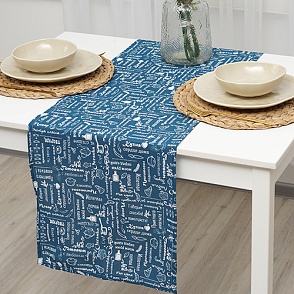 Дорожка декоративная "Правила кухни" 40х145, рогожка, 100% хлопок, "Индиго (ПК)"