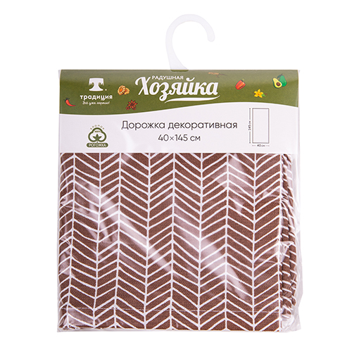Дорожка декоративная "Радушная хозяйка (Традиция)" 40х145, рогожка, 100% хлопок, "Елочка коричневый"