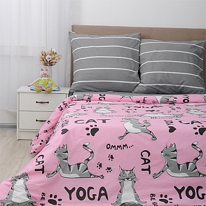 КПБ "Традиция", поплин, 100% хлопок, пл. 118 гр./кв.м., "Йога Кошки розовый"