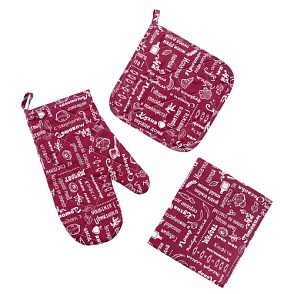 Набор для кухни 3 предмета "Правила кухни" (рукавичка-прихватка, прихватка, декоративное полотенце), 100 % хлопок, "Вишня (ПК)"