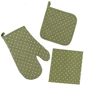 Набор для кухни 3 предмета "Радушная хозяйка (Традиция)" (рукавичка-прихватка, прихватка, полотенце), 100% хлопок, "Горошек олива"