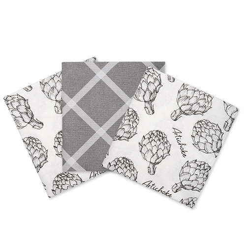 Набор декоративных полотенец (3 шт.) "Радушная хозяйка (Традиция)", рогожка, 100% хлопок, "Артишоки"