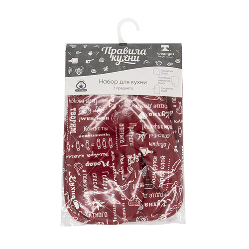 Набор для кухни 3 предмета "Правила кухни" (рукавичка-прихватка, прихватка, декоративное полотенце), 100 % хлопок, "Вишня (ПК)"