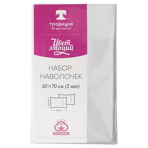 Полное наименование Набор наволочек 50х70 - 2 шт. "Цвет Эмоций", 100 % хлопок, пл. 110 гр./кв. м., "Белый"