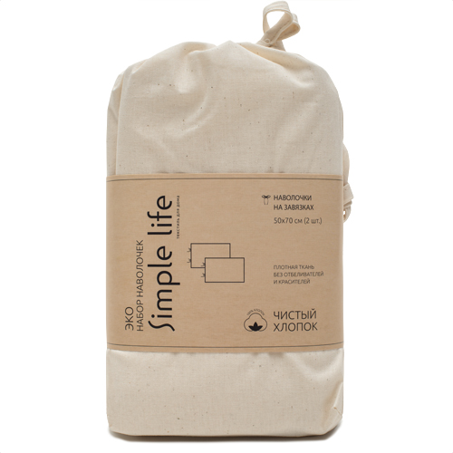 Набор наволочек 50х70-2 шт. "Чистый хлопок" на завязках, поплин, 100% хлопок, пл. 118 гр./кв. м., ВБ