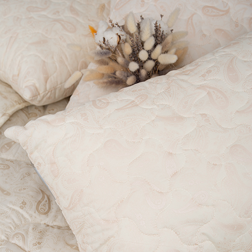 Овечья шерсть состоит из тончайших витых волокон, сохраняющих тепло независимо от перепадов температуры, способна поглощать до 35% влаги человеческого тела, оставаясь при этом сухой и не приобретая неприятного запаха. Подушки и одеяла с овечьей шерстью создают комфортный климат для сна, идеально подходят для холодного времени года и людей, заботящихся о своем здоровье. Подушка с овечьей шерстью имеет среднюю степень жесткости и идеально подойдет для сна на боку или на спине. Стеганый чехол изделия гарантирует надежное удержание наполнителя и предотвращает потерю формы. Фигурная стежка предотвращает появление «комков» и «разрыв» пласта.