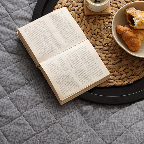 Покрывало стеганое 215х240 "Традиция", поплин, 100% хлопок, "Серо-голубой текстура"