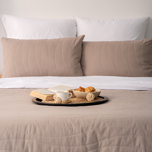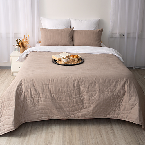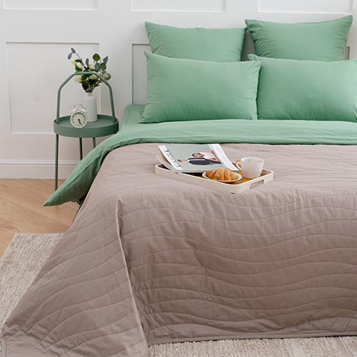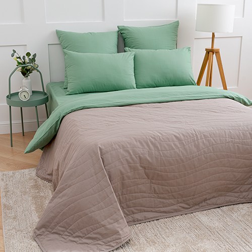 Покрывало стеганое двухстороннее из поплина размером 215х240. Ткань - 100% хлопок, отличается высокой практичностью и износостойкостью, проста в уходе, не линяет и не деформируется даже после множества стирок. Фигурная ниточная стежка не только украшает внешний вид покрывала, а также надежно фиксирует наполнитель из синтепона плотностью 80 гр./кв.м. Синтепон придает изделию мягкость, сохраняет тепло, гигиенически и экологически безопасен. Пошив в строгом соответствии с ГОСТ. Двухстороннее покрывало в трендовых цветах оживит вашу спальню, добавит тепла и комфорта.