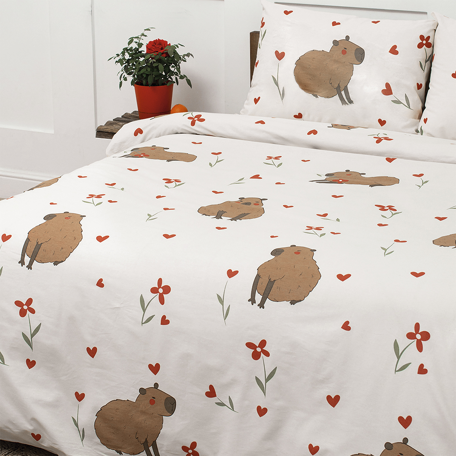 КПБ 1,5 спальный с 1 нав.50*70, поплин,100% хлопок, пл. 110 гр./кв.м "Капибара основа (светлый фон)"