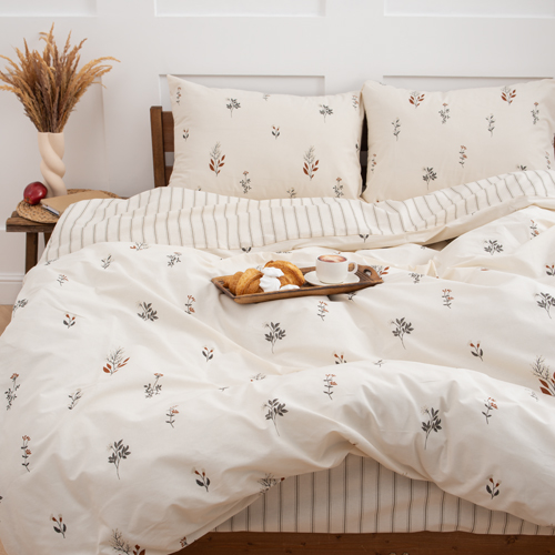КПБ "Чистый хлопок", 2,0 спальный с простыней на резинке, поплин, 100% хлопок, "Гербариум ВБ"