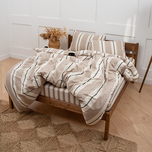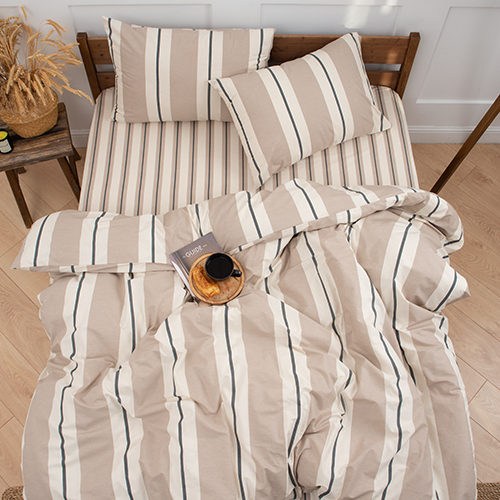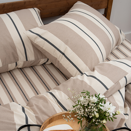 КПБ "Чистый хлопок" 2,0 спальный с европростыней, наволочки 50х70, поплин, 100% хлопок, "Полоса бежевый"