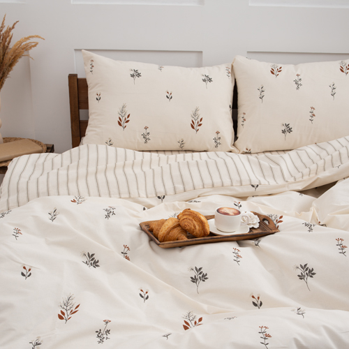 КПБ "Чистый хлопок" 2 спальный с европростыней, наволочки 50х70, поплин, 100% хлопок, "Гербариум ВБ"