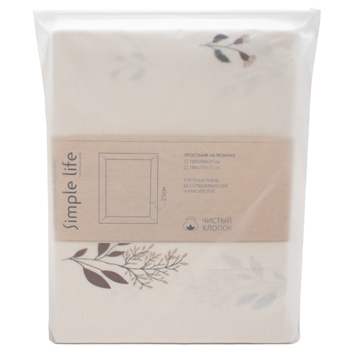Простыня на резинке 160х200х25 "Чистый хлопок", поплин, 100% хлопок, пл. 115 гр./кв. м., Гербариум ВБ