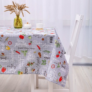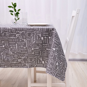 Скатерть "Правила кухни", рогожка, 100 % хлопок, "Серый"