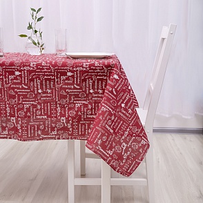 Скатерть "Правила кухни", рогожка, 100 % хлопок, "Вишня"