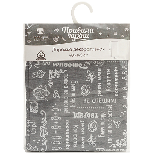 Полное наименование Дорожка декоративная "Правила кухни" 40х145, рогожка, 100% хлопок, "Серый (ПК)"