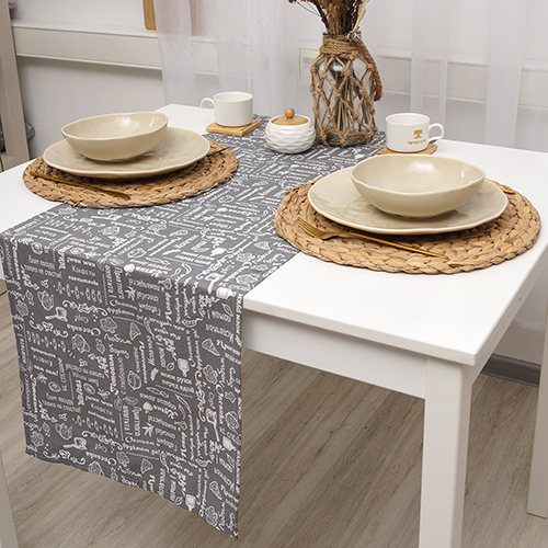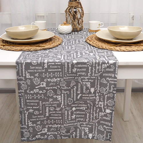 Дорожка декоративная "Правила кухни" 40х145, рогожка, 100% хлопок, "Серый (ПК)"