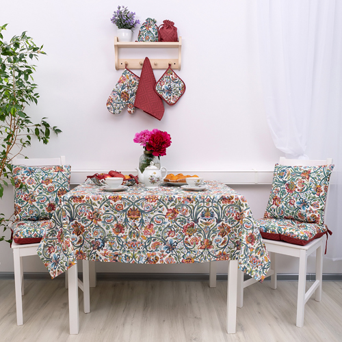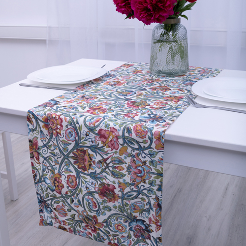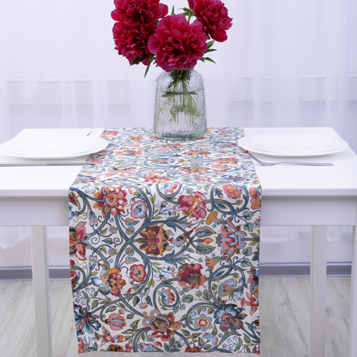 Дорожка декоративная 40х145 "Радушная хозяйка (Традиция)", выполнена из набивной рогожки (100% хлопок), с современными эксклюзивными дизайнами. Дорожка сделает сервировку стола оригинальной и интересной, а также защитит стол от царапин и различных загрязнений. Благодаря небольшим размерам за дорожкой ухаживать проще, чем за большой скатертью. Можно экспериментировать с сервировкой, дорожку можно стелить вдоль и поперек стола, использовать одну или несколько сразу, комбинировать со скатертью, дополнять другими изделиями из коллекции, например, полотенцами.