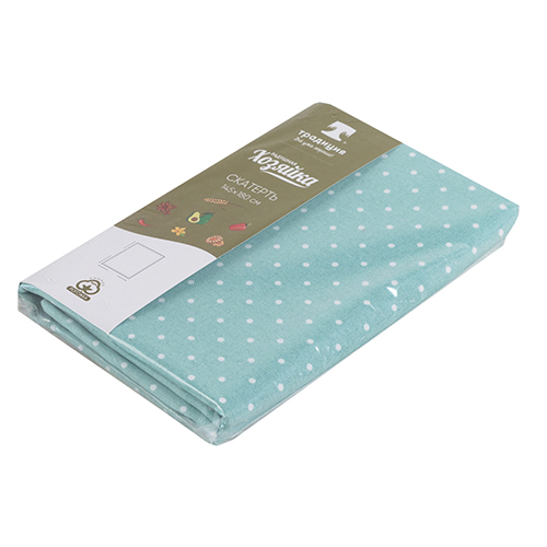 Полное наименование Скатерть декоративная "Радушная хозяйка (Традиция)" 145х180, рогожка, 100 % хлопок, "Горошек мята ВБ"