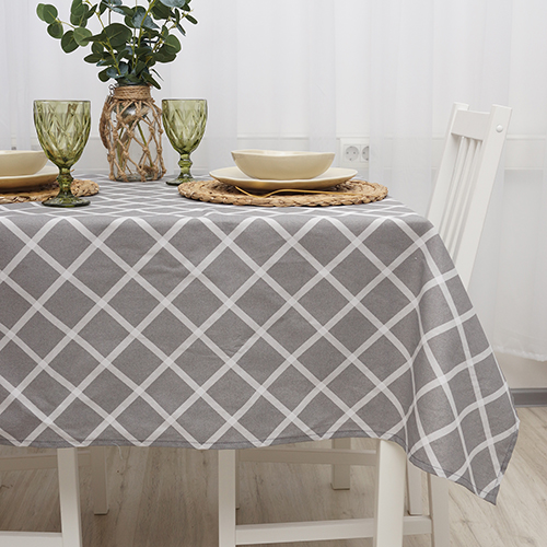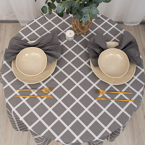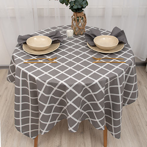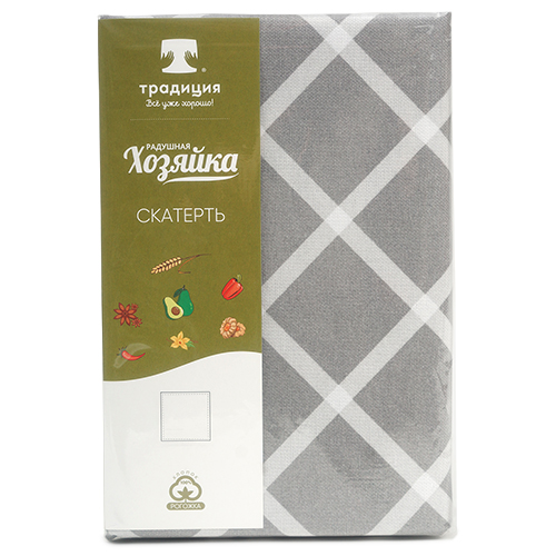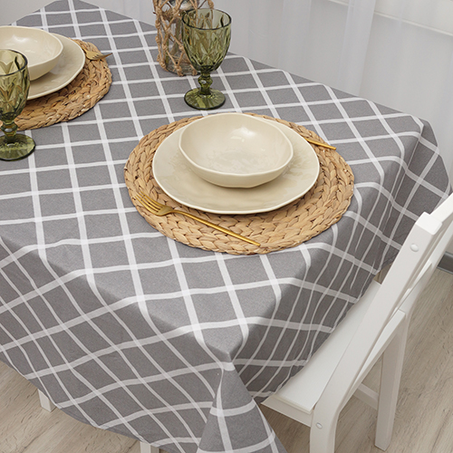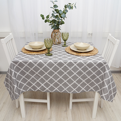 Скатерть декоративная "Радушная хозяйка (Традиция)" 120х145, рогожка, 100 % хлопок, "Клетка Грей"