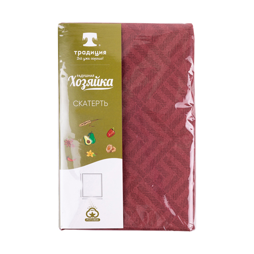 Полное наименование Скатерть декоративная "Радушная хозяйка (Традиция)" 145х145, рогожка, 100 % хлопок, "Ромбы бордо"
